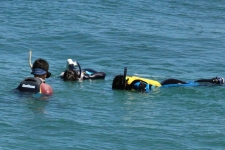 比較的浅い海で、足の着くところから行います。だから、泳げない方や体力に自信のない方でも安心してご参加いただけます。